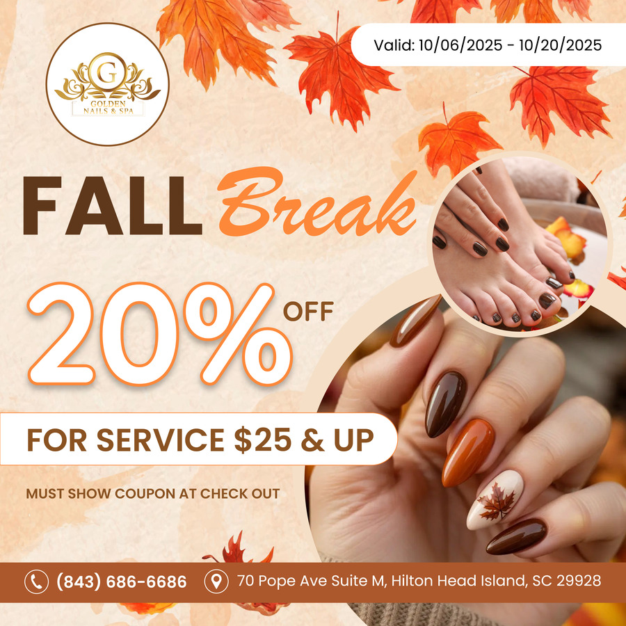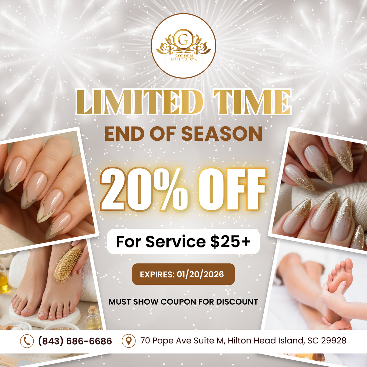 Welcome to Golden Nails & Spa in 70 Pope Ave Suite M, Hilton Head Island, SC 29928. We are more than just a conventional nail salon.