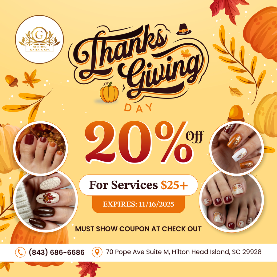 Welcome to Golden Nails & Spa in 70 Pope Ave Suite M, Hilton Head Island, SC 29928. We are more than just a conventional nail salon.